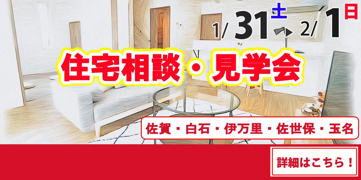 1/31(土)・2/1(日)のオープンハウスは佐賀・白石・伊万里・佐世保・玉名で開催致します!