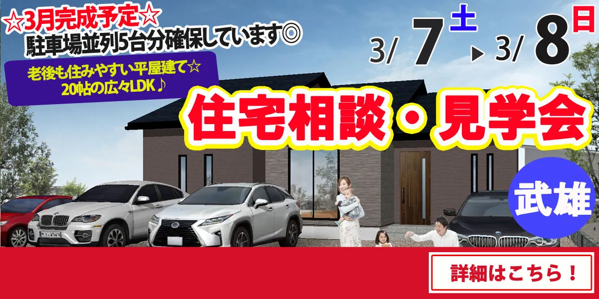 3/7(土)・3/8(日)のオープンハウスは武雄・伊万里・佐賀・佐世保・荒尾で開催致します!